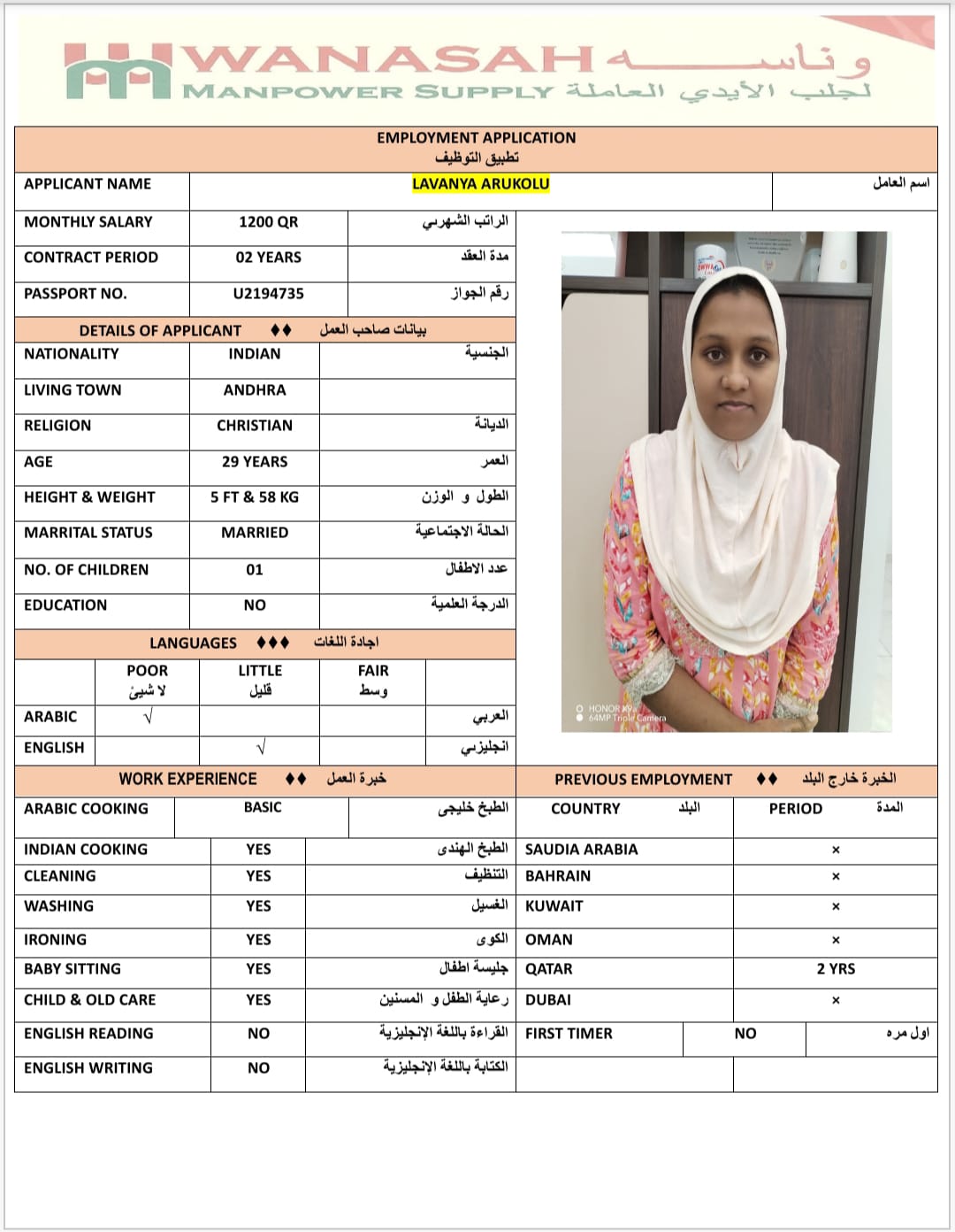 Name - English LAVANYA ARUKOLU / AVAILABLE IN DOHA