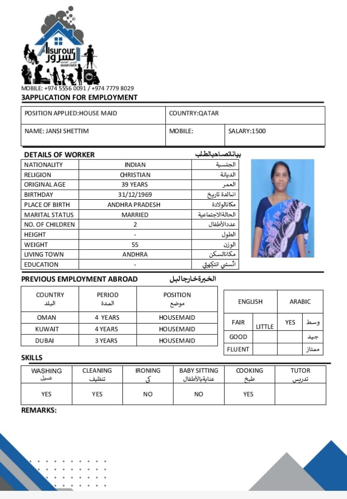 "تحتاج إلى مساعدة في المنزل؟ نحن نستقدم لكم خادمة ، سائق / سائقة، طباخ / طباخة، مربية، ونوفر ايضا عاملات صالون. للاستفسارات، يرجى الاتصال على 77798029 أو 77749342 (متاح للمكالمات والواتساب)."