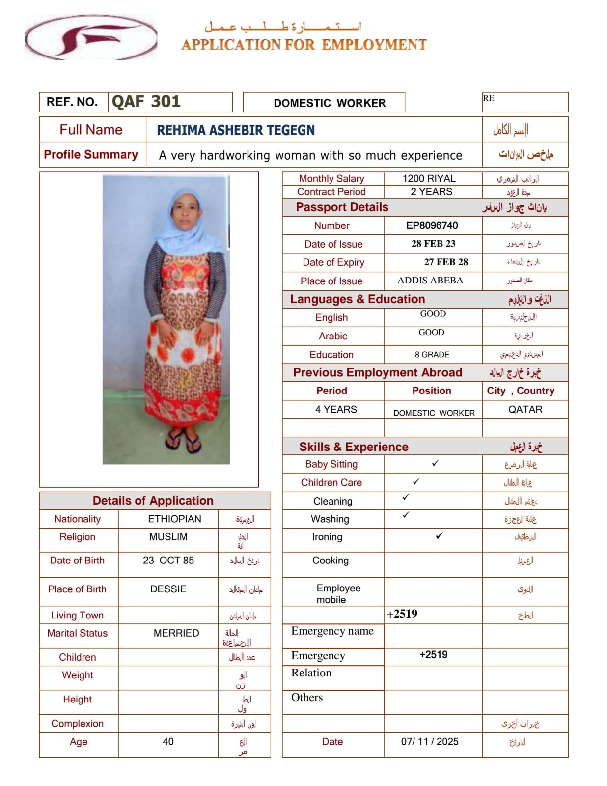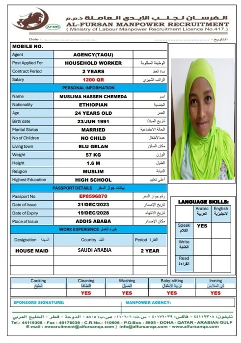 HAWA HUSEN عاملة منزلية - أثيوبيا