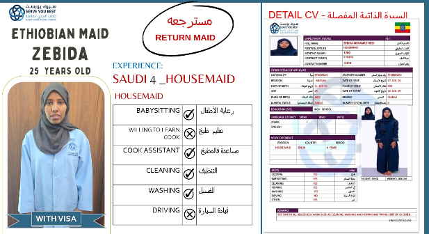 إنها شابة ولديها خبرة أربع سنوات في السعودية. تجيد التنظيف والغسيل والكي ورعاية الأطفال، وترغب في تعلم المزيد عن الطعام.