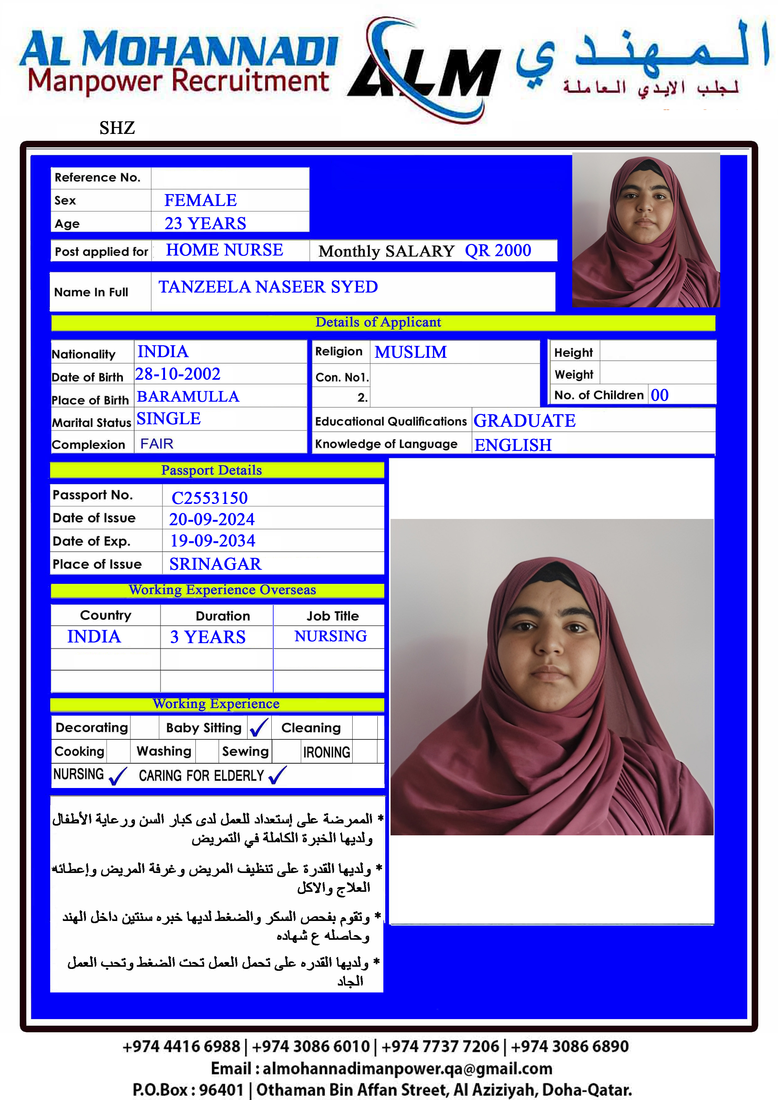 الاسم - عربي TANZEELA NASEER SYED