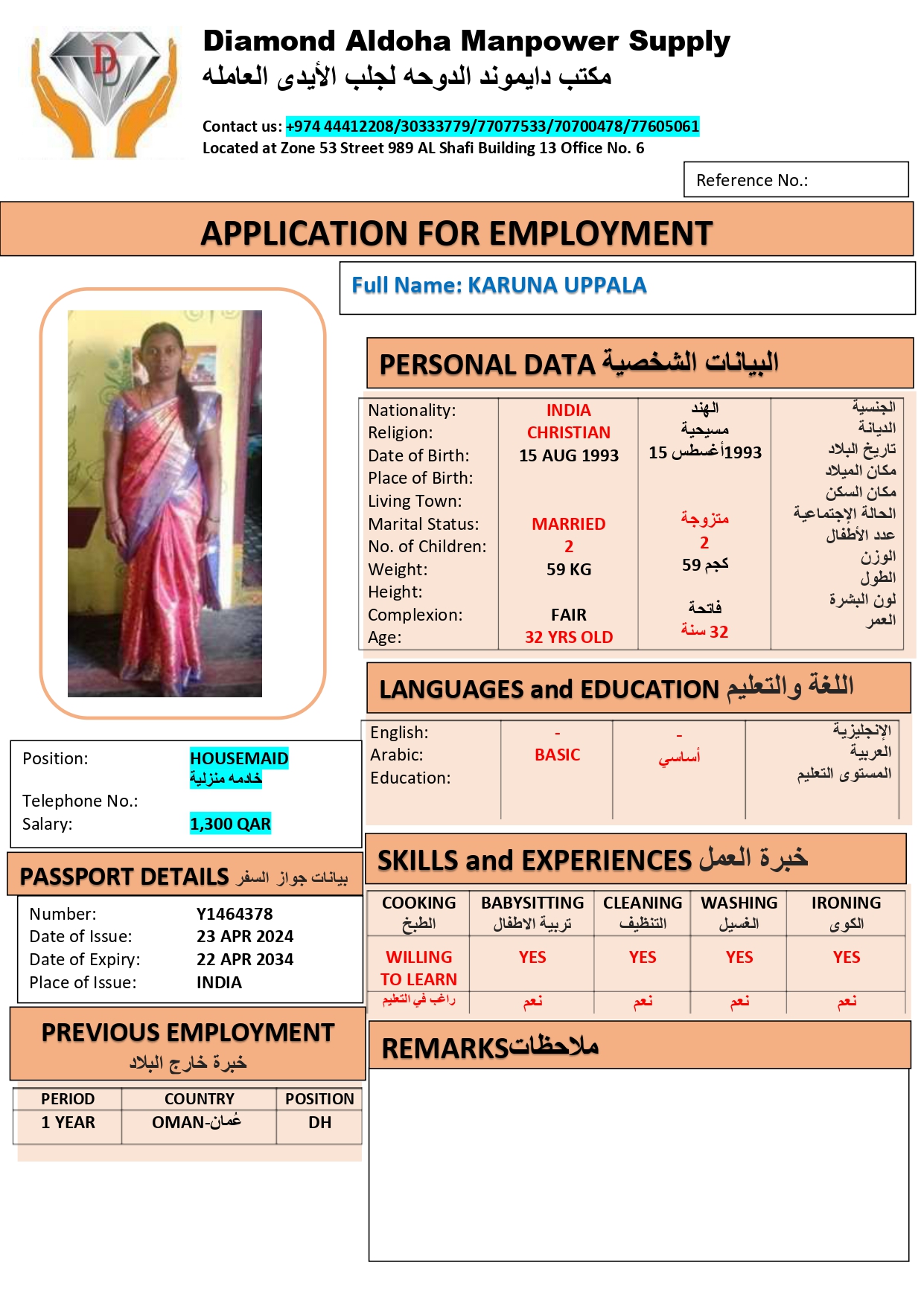 الشركة ‏ دايموند الدوحة لجلب الايدى العاملة