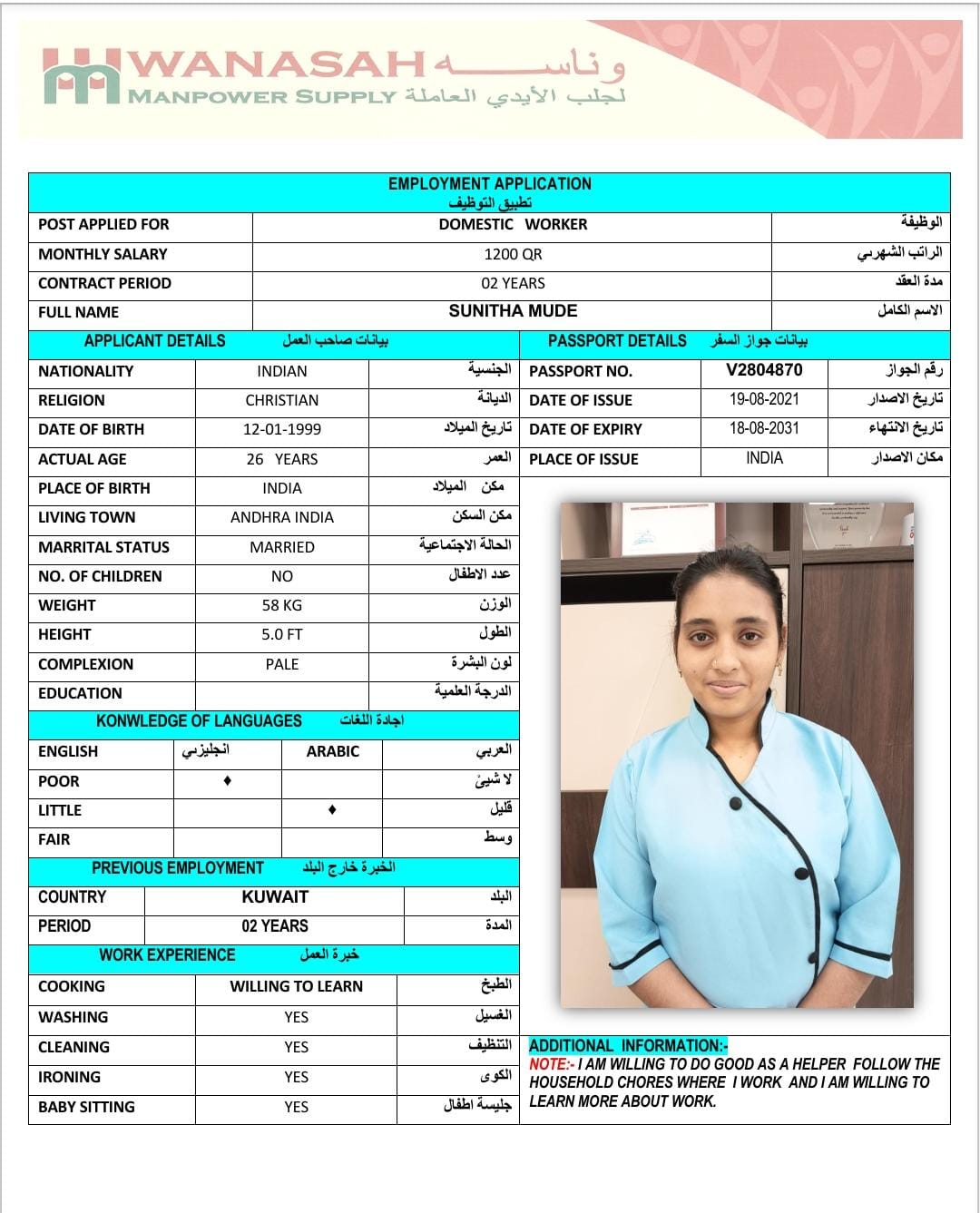 الاسم - عربي SUNITHA MUDE