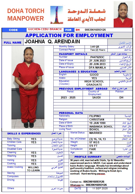 الاسم - عربي JOAHNA Q ARENDAIN