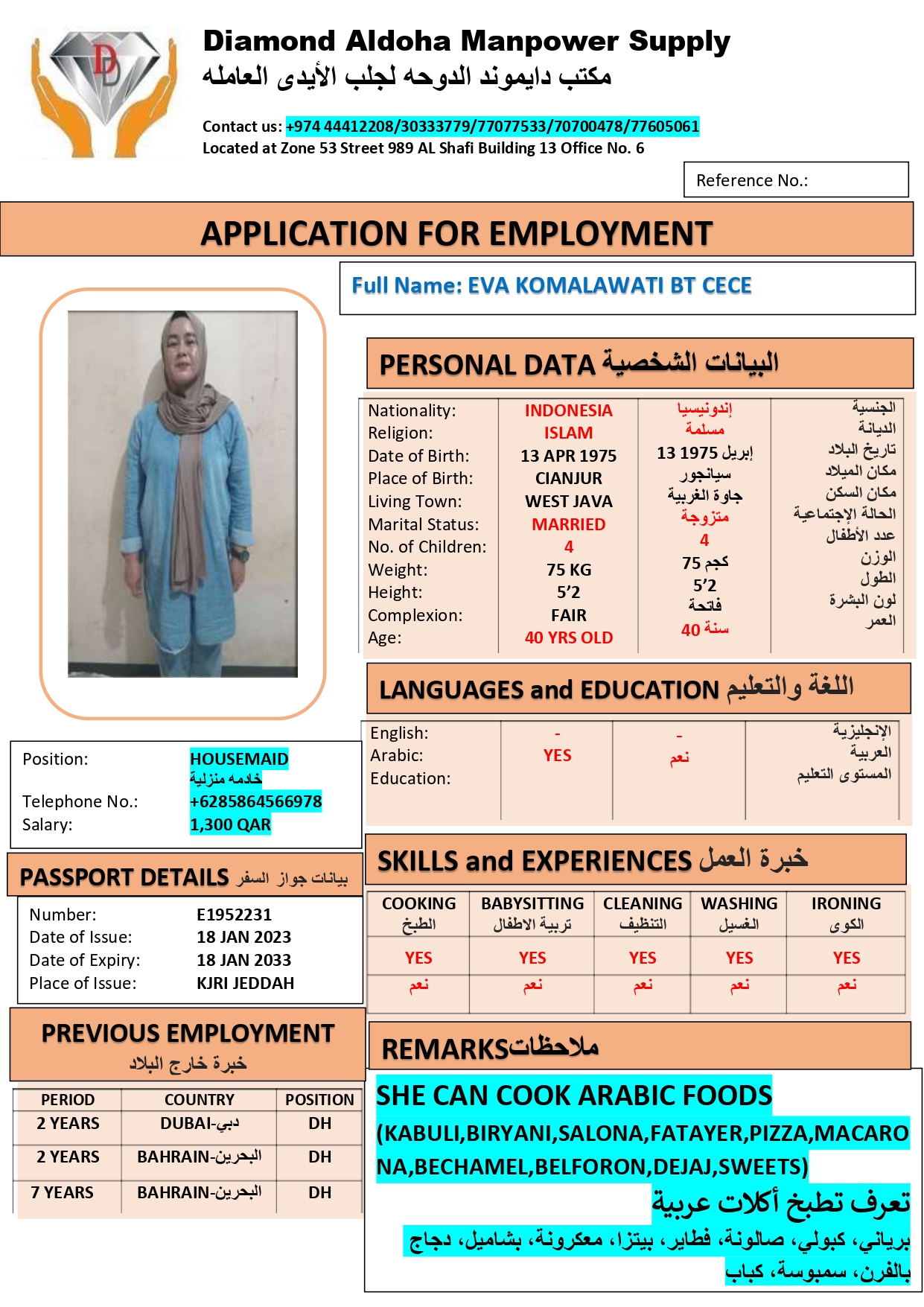 الاسم - عربي EVA KOMALAWATI BT CECE