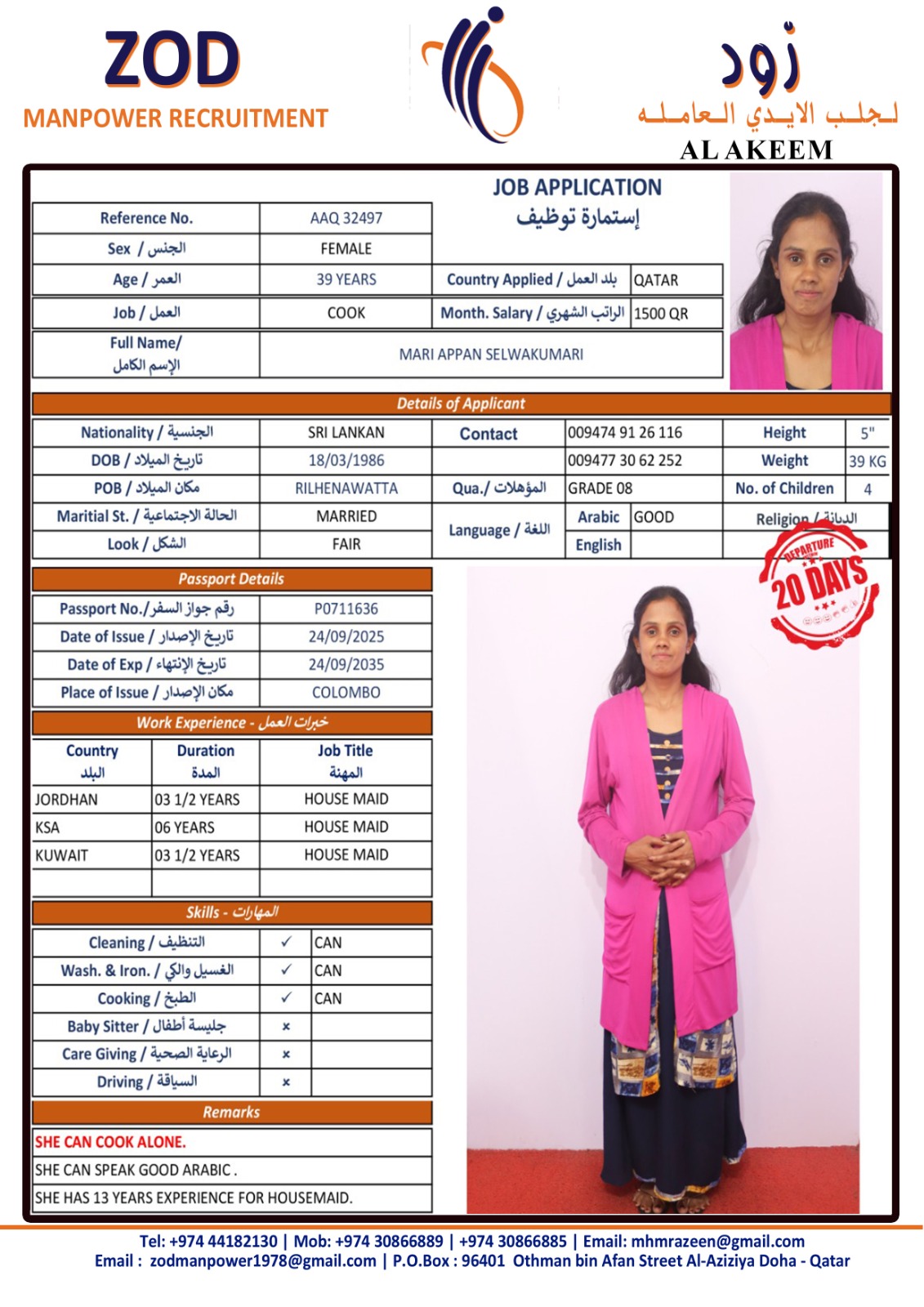 الاسم - عربي MARI APPAN SELWAKUMARI