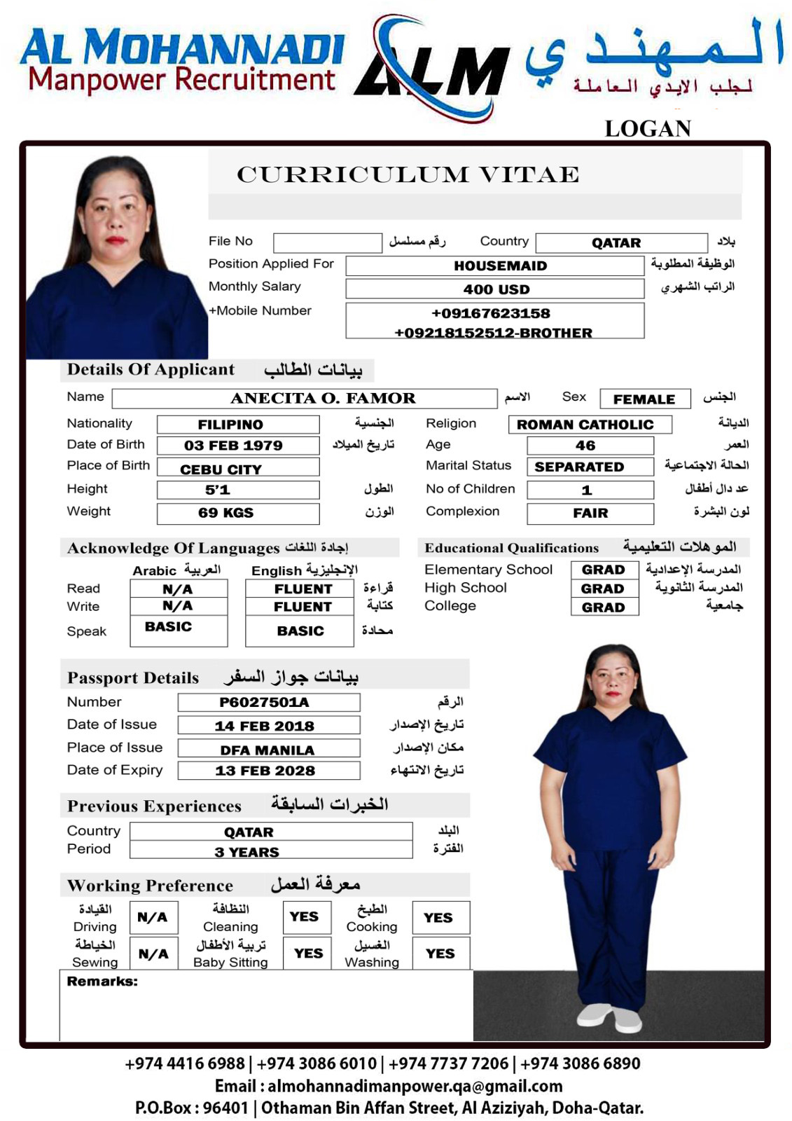 البريد الإلكتروني almohannadimanpower.qa@gmail.com