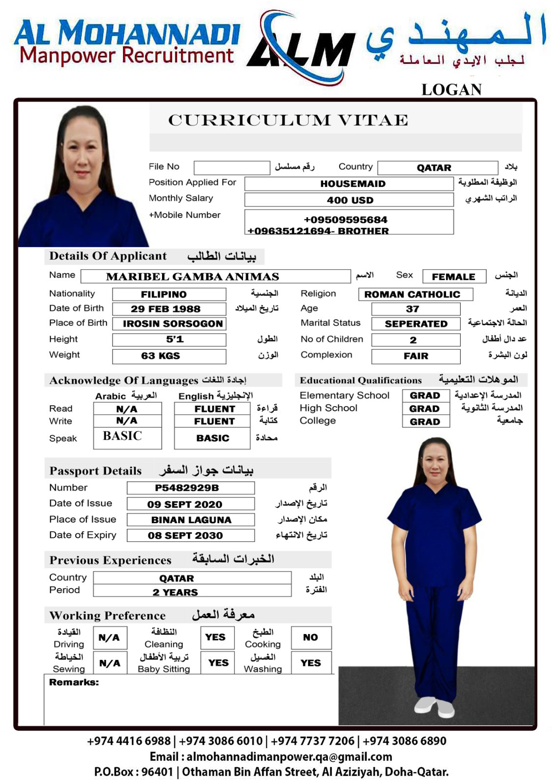 الاسم - عربي MARIBEL GAMBA ANIMAS