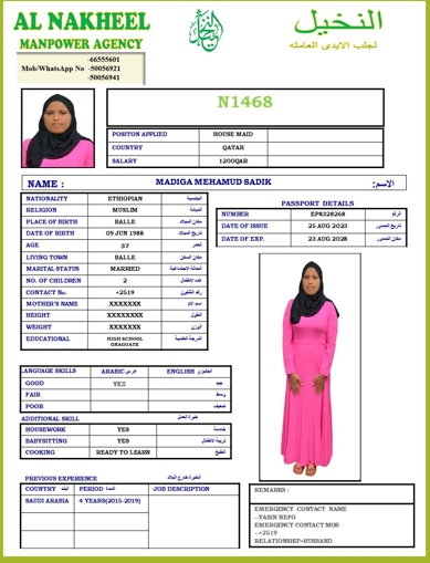 الاسم - عربي MADIGA MEHAMUD SAADIK