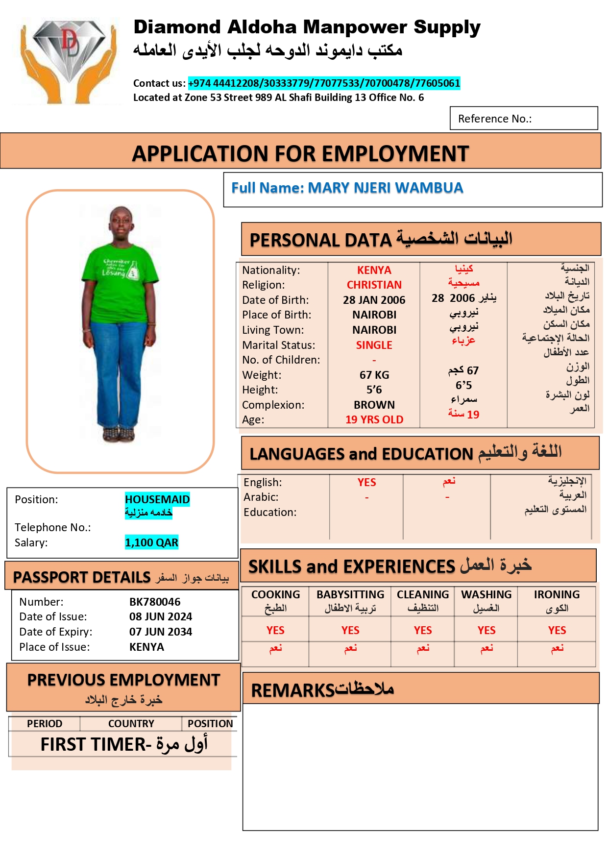 الاسم - عربي MARY NJERI WAMBUA