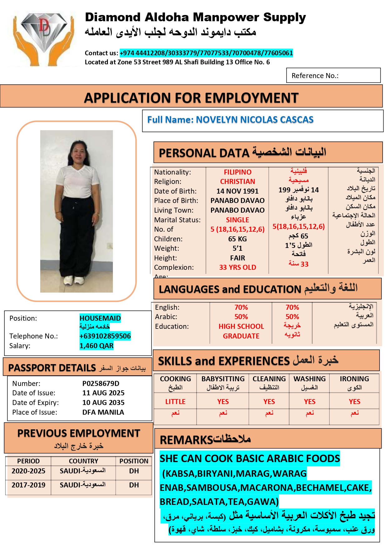 الاسم - عربي NOVELYN NICOLAS CASCAS