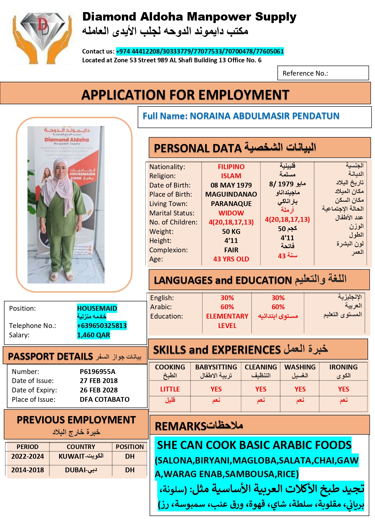 الشركة ‏ دايموند الدوحة لجلب الايدى العاملة