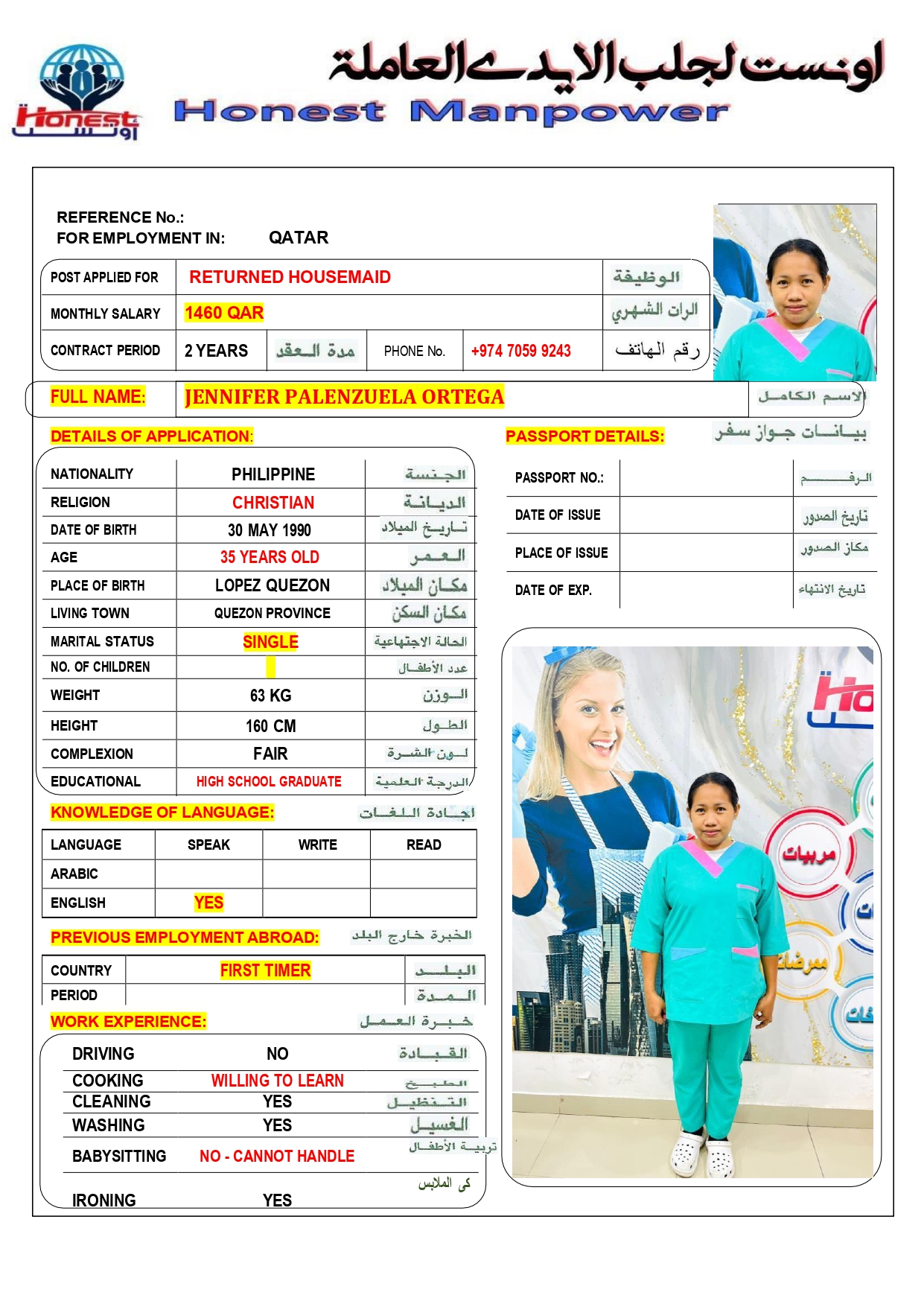 الاسم - عربي JENNIFER PALENZUELA ORTEGA