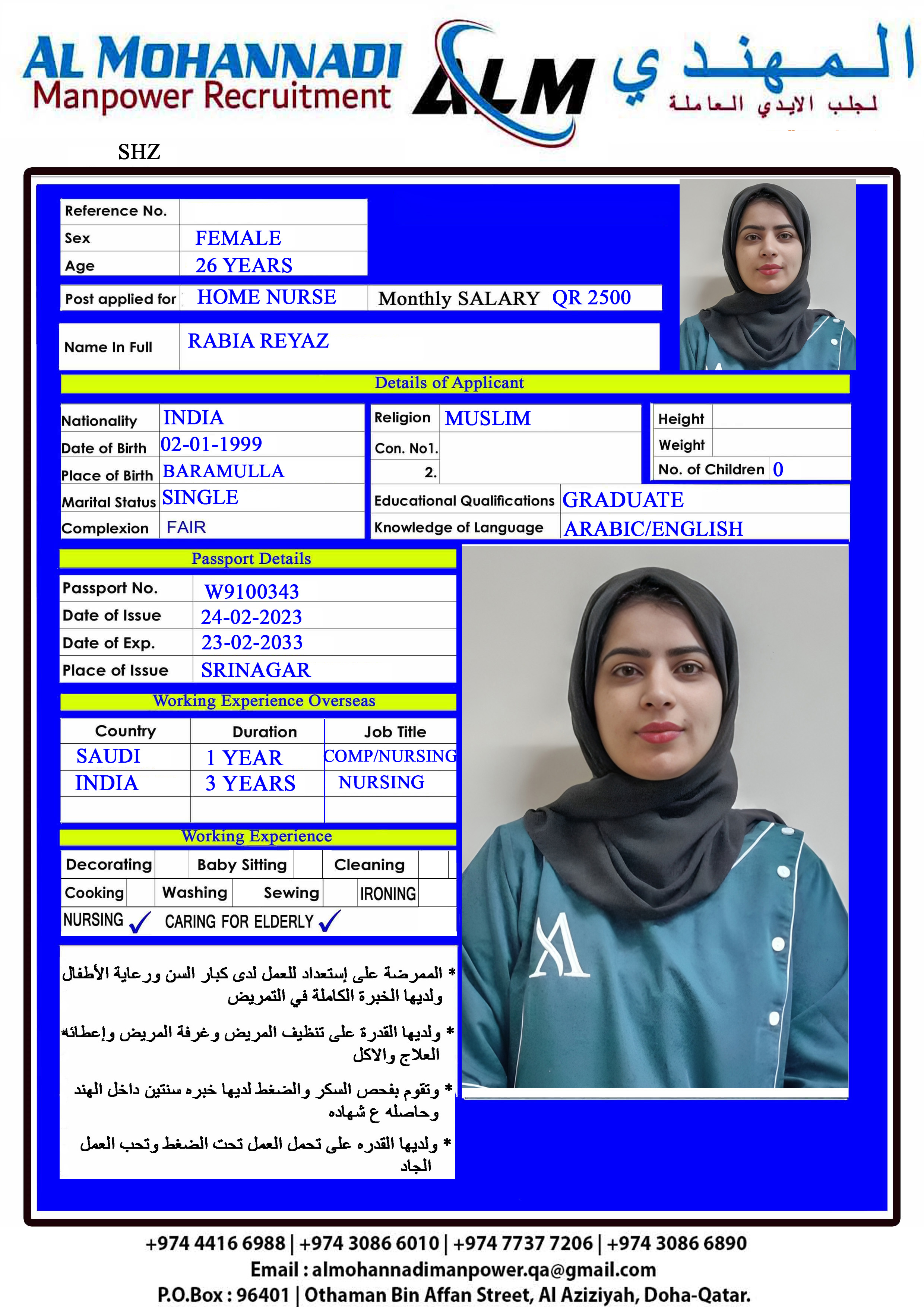 الاسم - عربي RABIA REYAZ