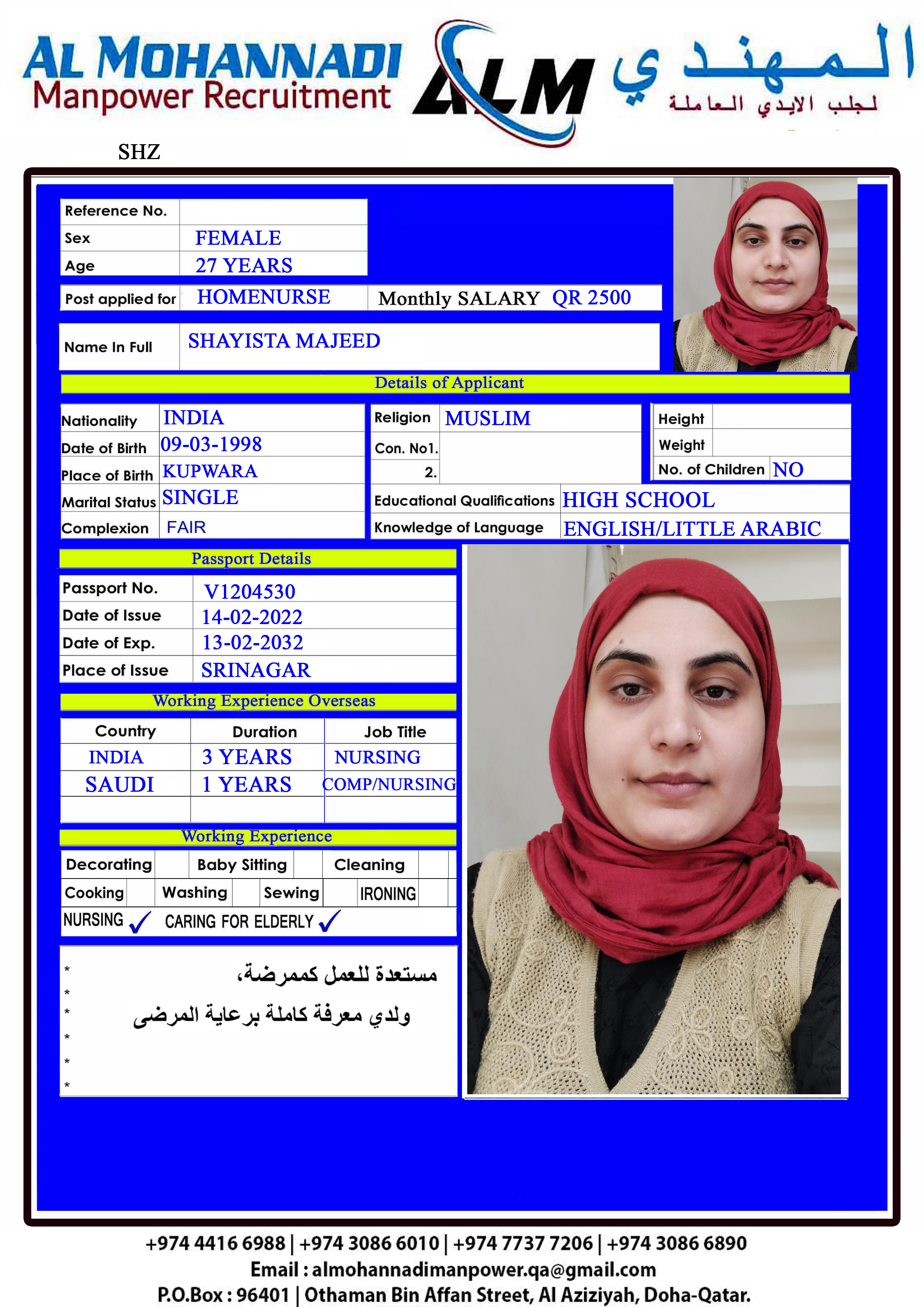 الاسم - عربي SHAYISTA MAJEED