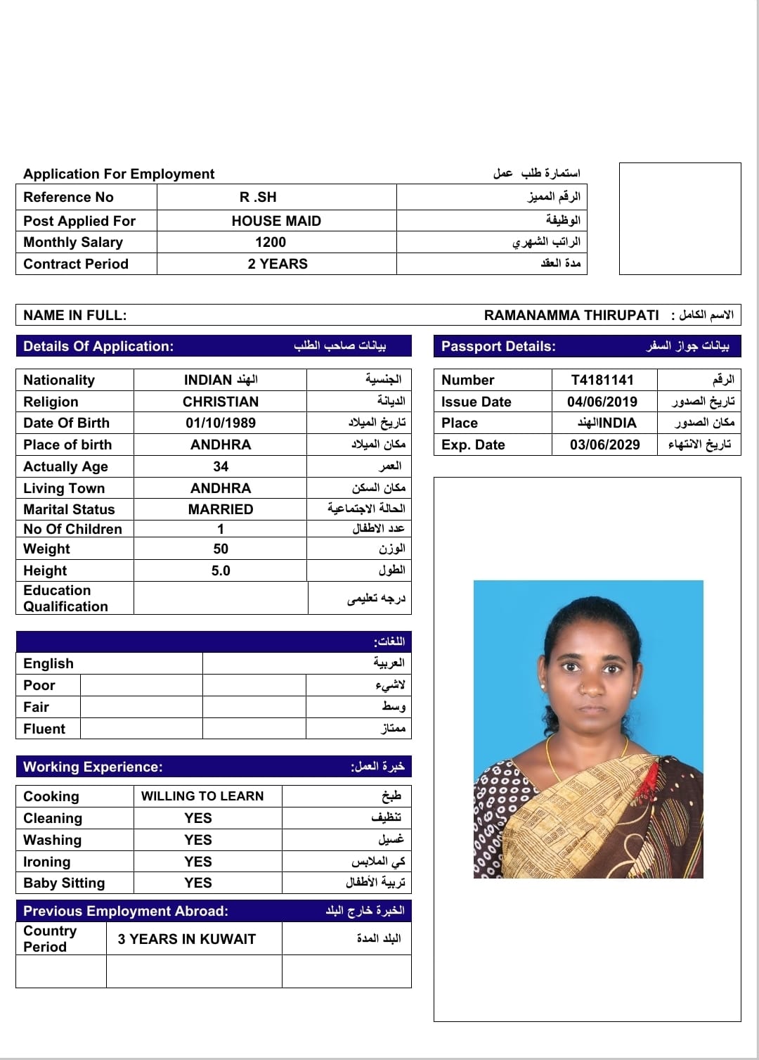 الاسم - عربي RAMANAMMA THIRUPATI