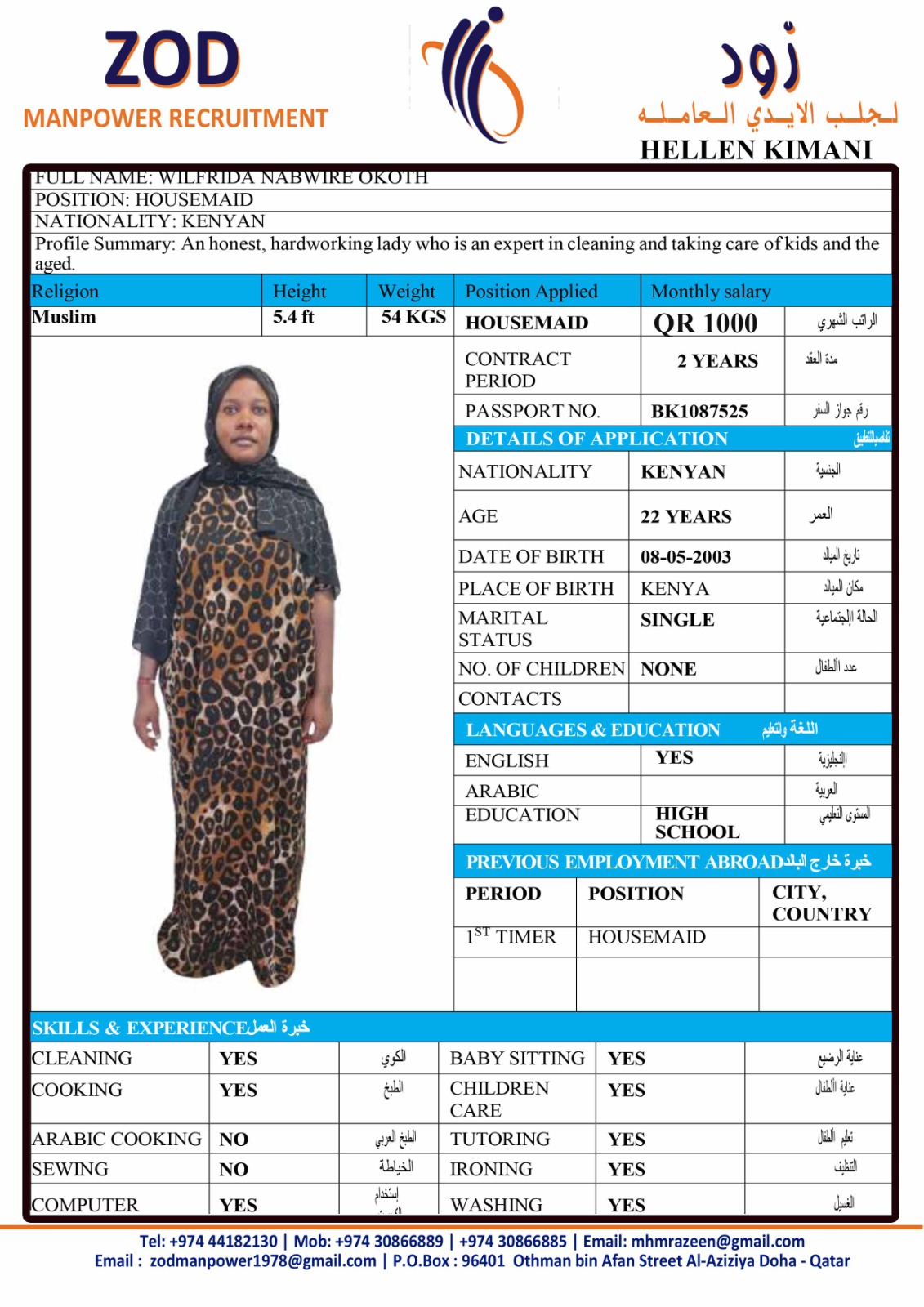 الاسم - عربي WILFRIDA NABWIRE OKOTH