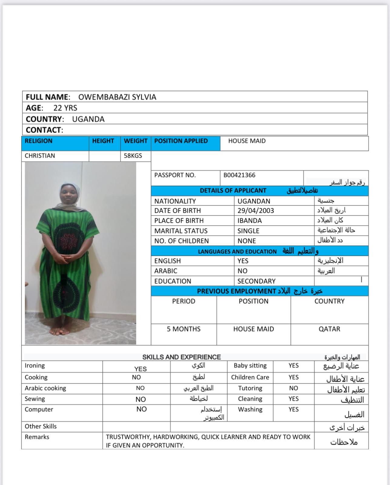 الاسم - عربي MBAZI SYLVIA