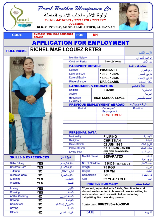 الاسم - عربي RICHEL MAE LOQUEZ RETES