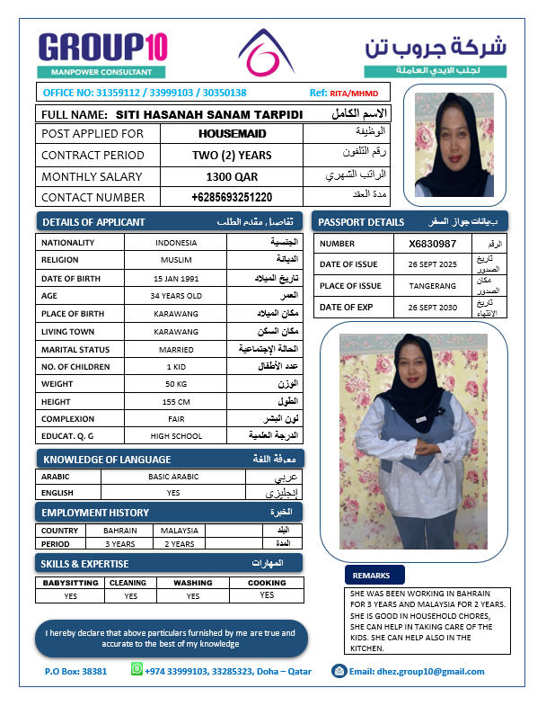 الاسم - عربي SITI HASANAH SANAM TARPIDI