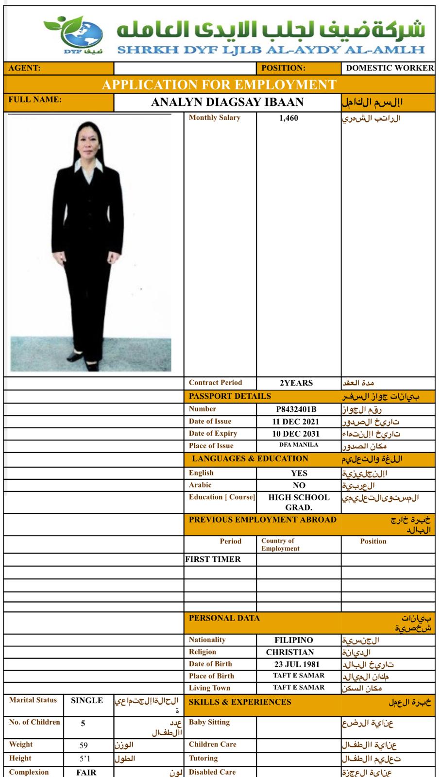 بيانات العامل