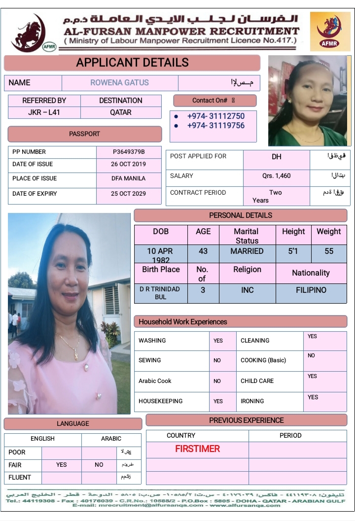 الاسم - عربي ROWENA GATUS