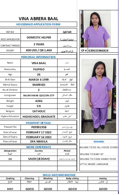 المهنة عاملة منزلية