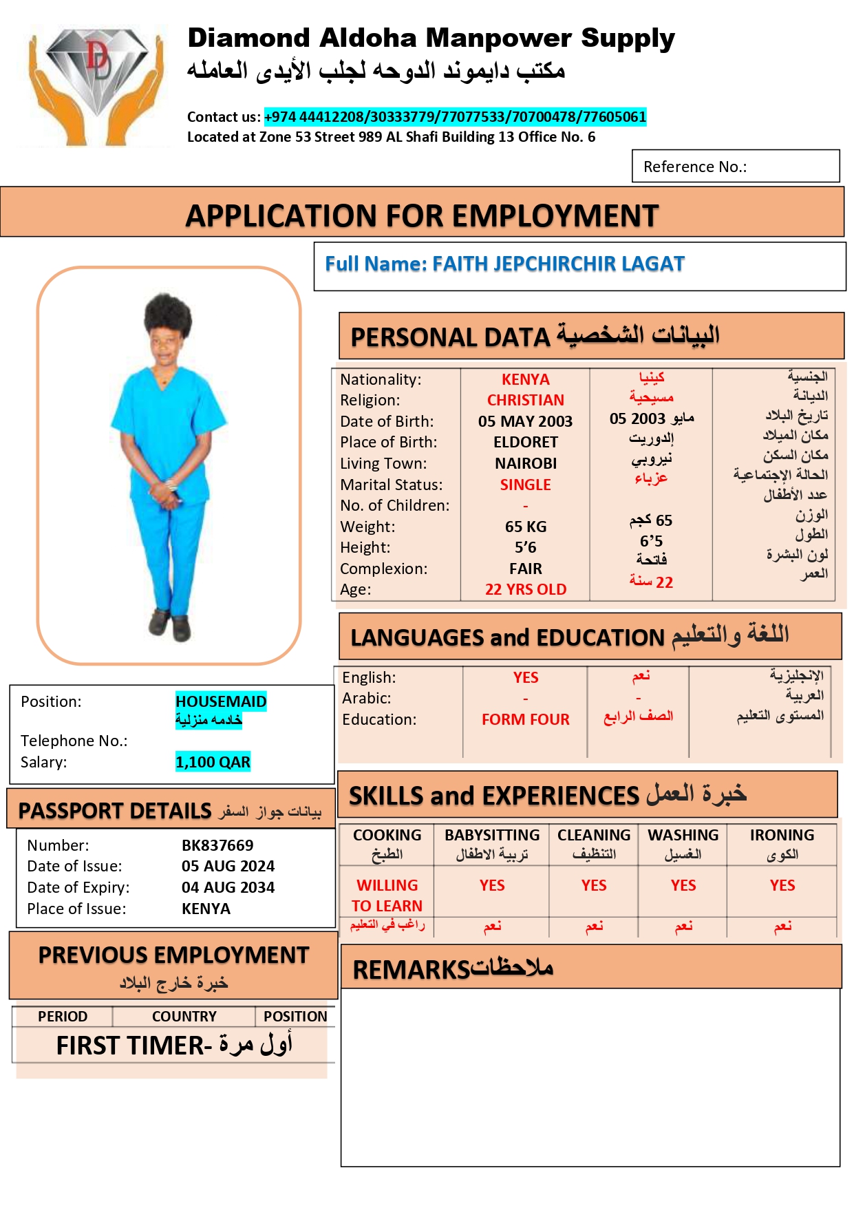 الشركة ‏ دايموند الدوحة لجلب الايدى العاملة