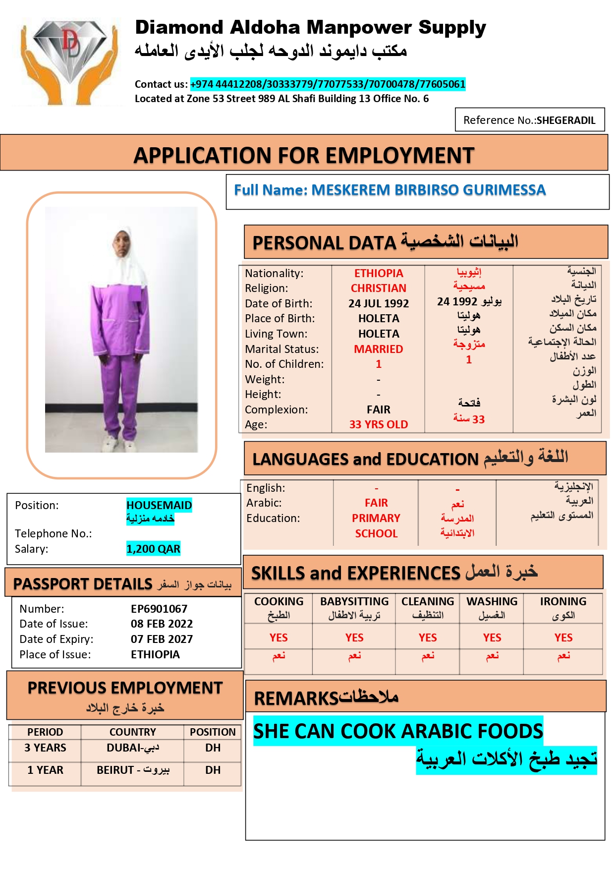 الاسم - عربي MESKEREM BIRBISO GURIMESSA