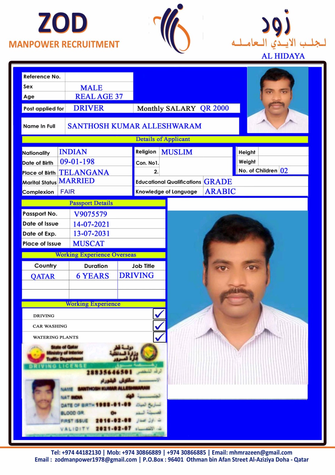 الاسم - عربي SANTHOSH KUMAR ALLESHWARAM