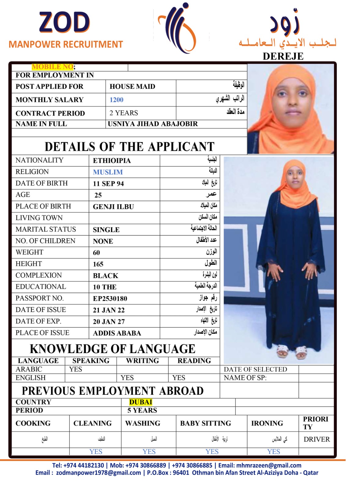 الاسم - عربي USNIYA JIHAD ABAJOBIR
