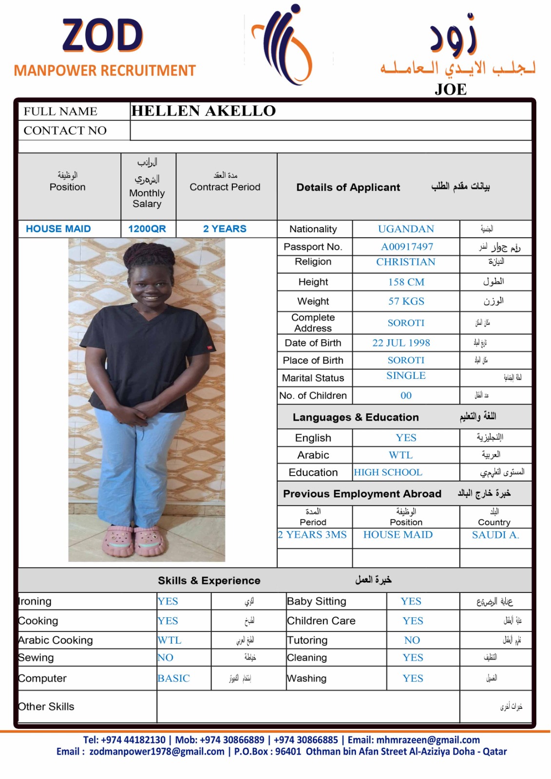 الاسم - عربي HELLEN AKELLO