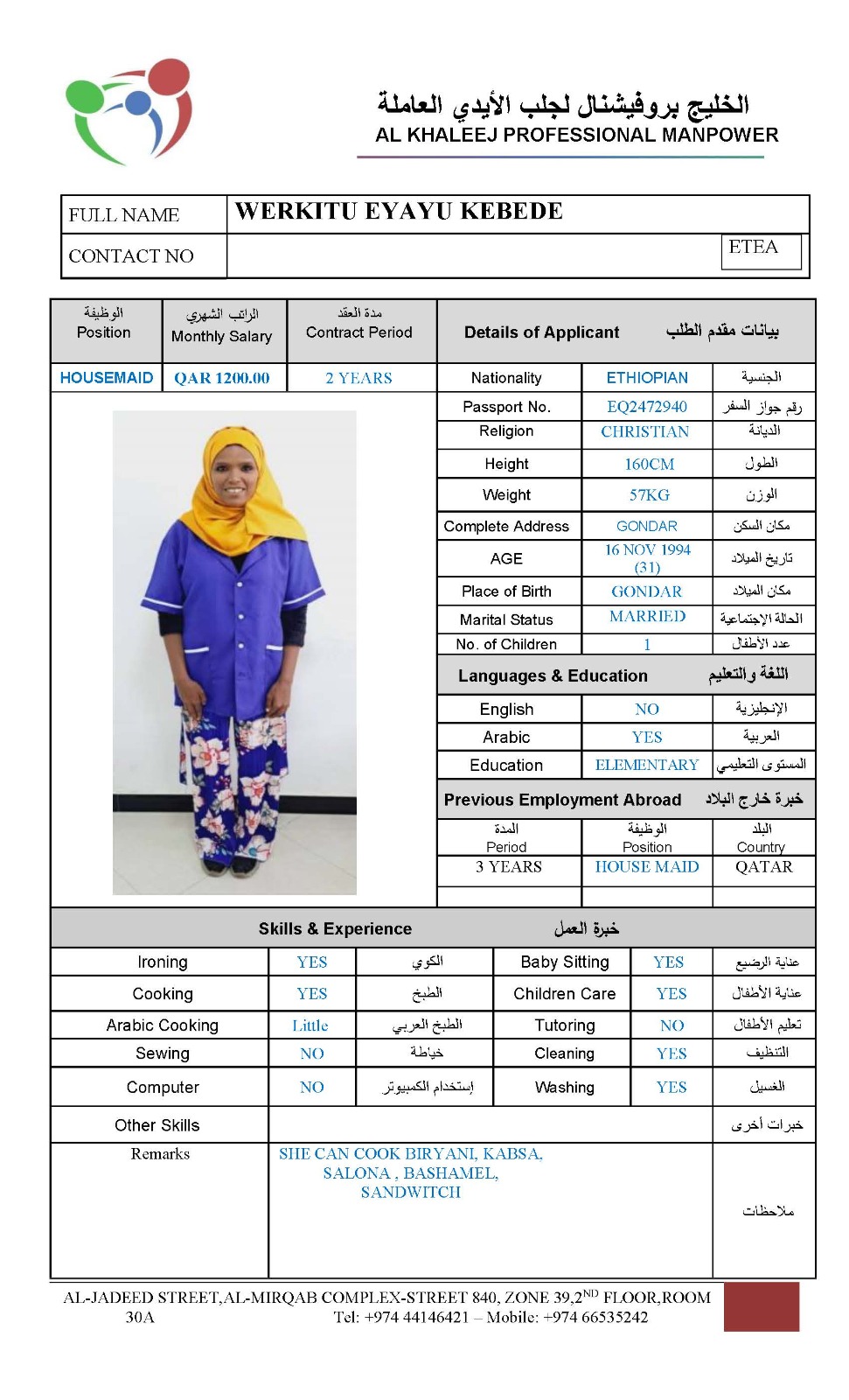 الاسم - عربي WERKITU EYAYU KEBEDE