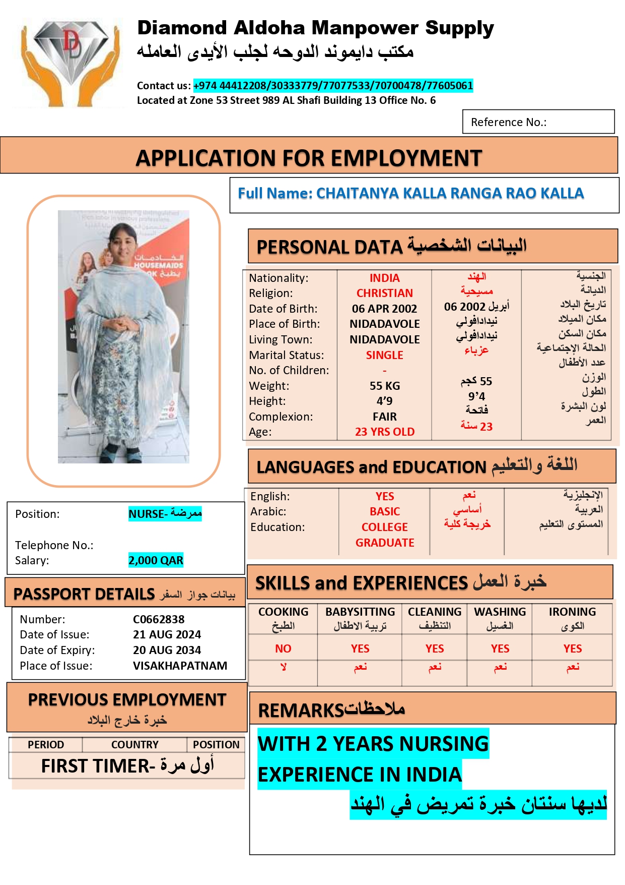 الشركة ‏ دايموند الدوحة لجلب الايدى العاملة