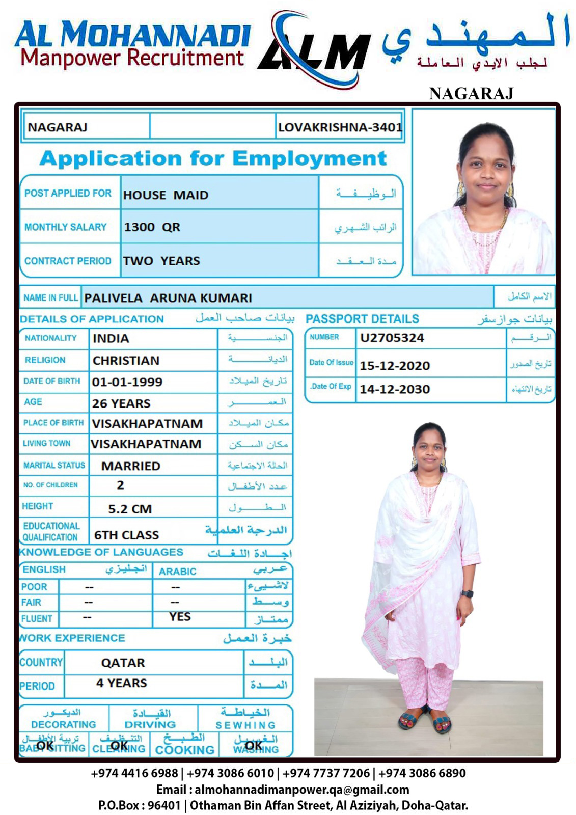 الاسم - عربي PALIVELA ARUNA KUMARI