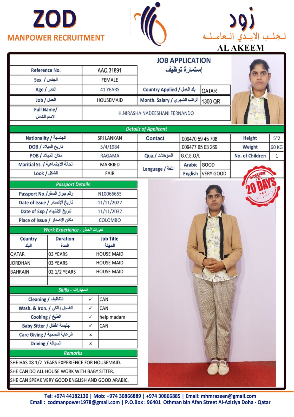 الاسم - عربي H.NIRASHA NADEESHANI FERNANDO