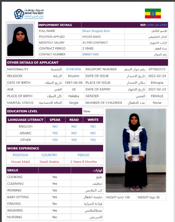 الجنسية أثيوبيا