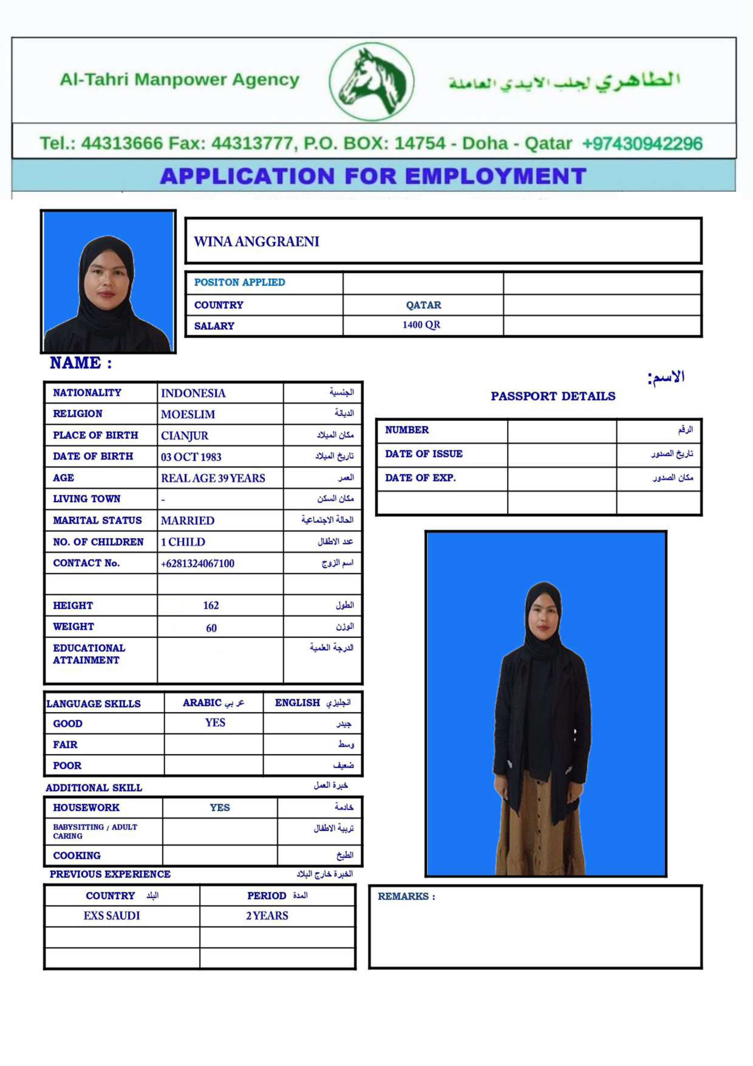 الاسم - عربي WINA ANGGRAENI_