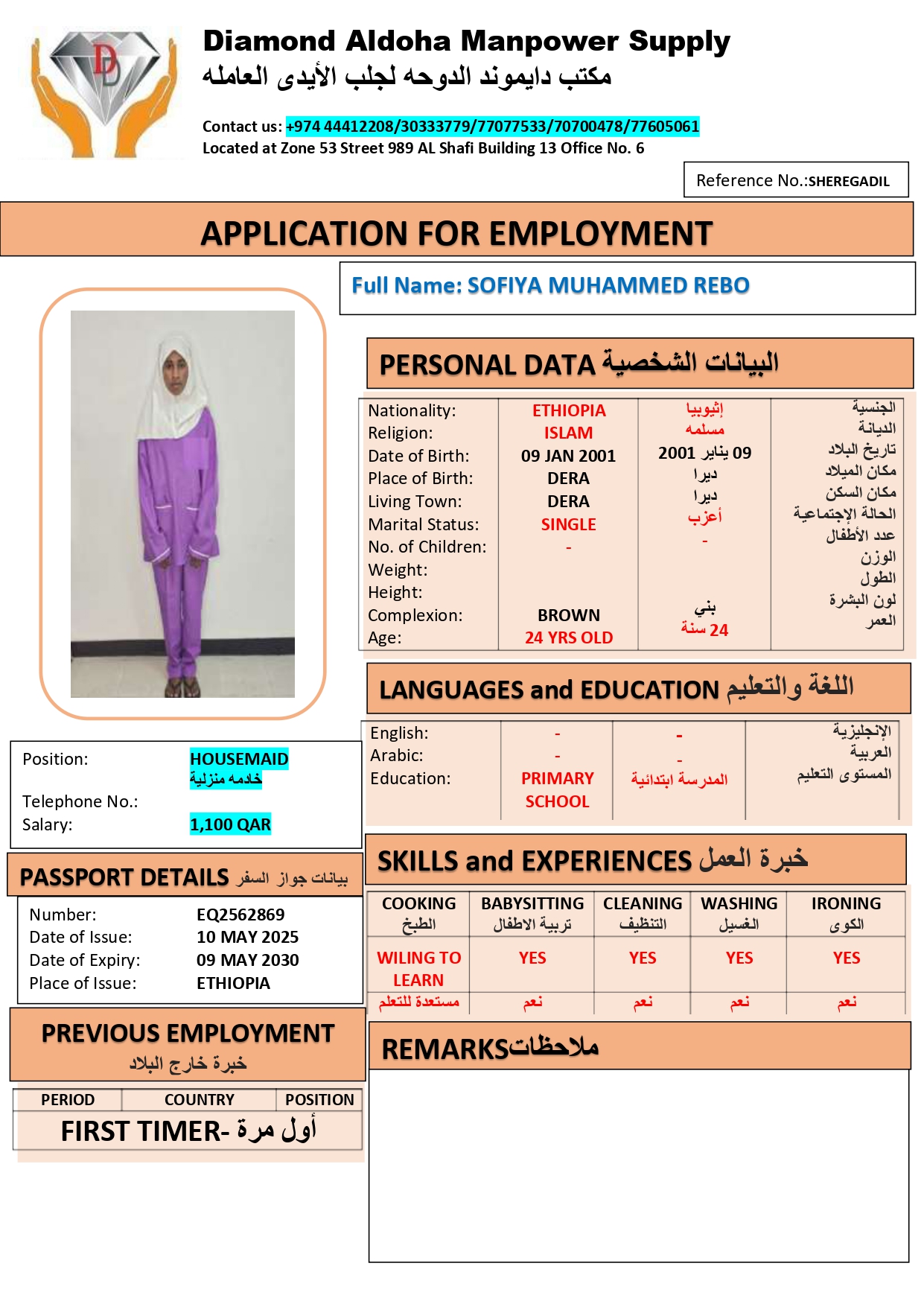 الاسم - عربي SOFIYA MUHAMMED REBO