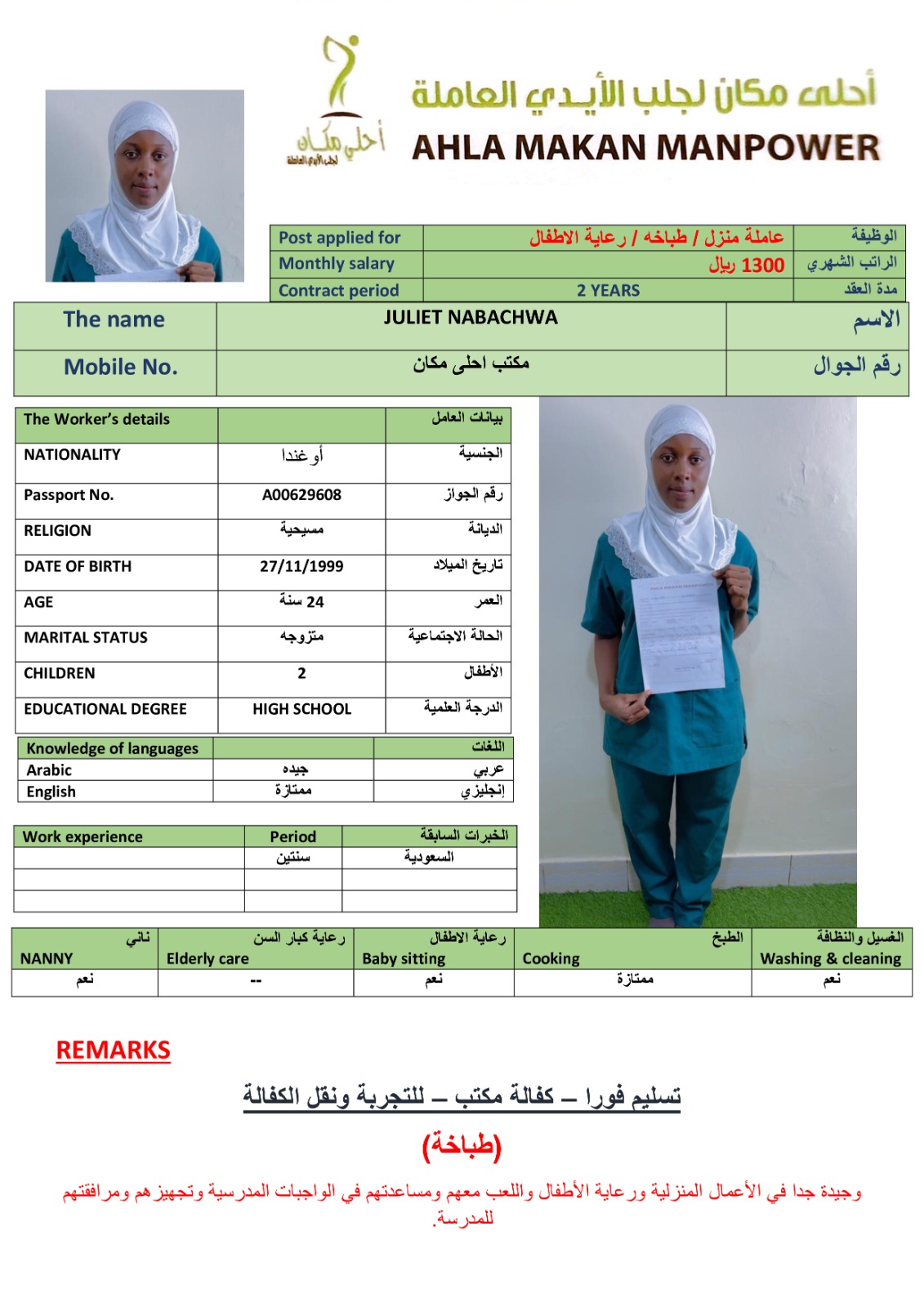 الاسم - عربي JULIET NABACHWA