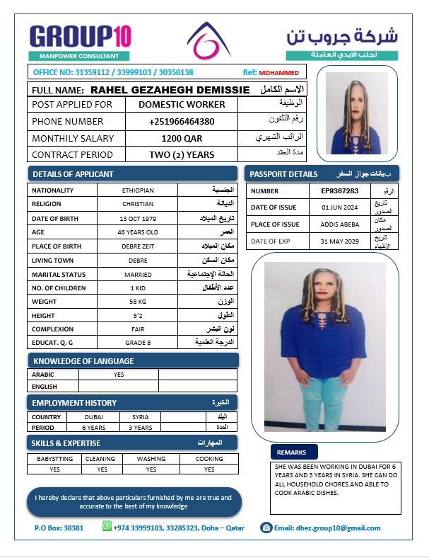 الاسم - عربي RAHEL GEZAHEGH DEMISSIE