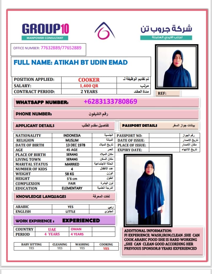 الاسم - عربي ATIKAH EMAD/INDONESIAN COOKER