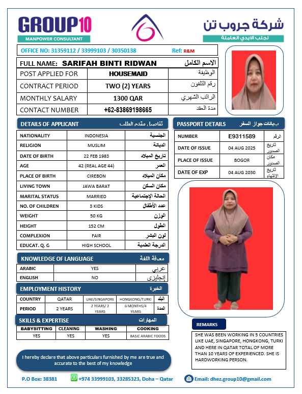 الاسم - عربي SARIFAH BINTI RIDWAN