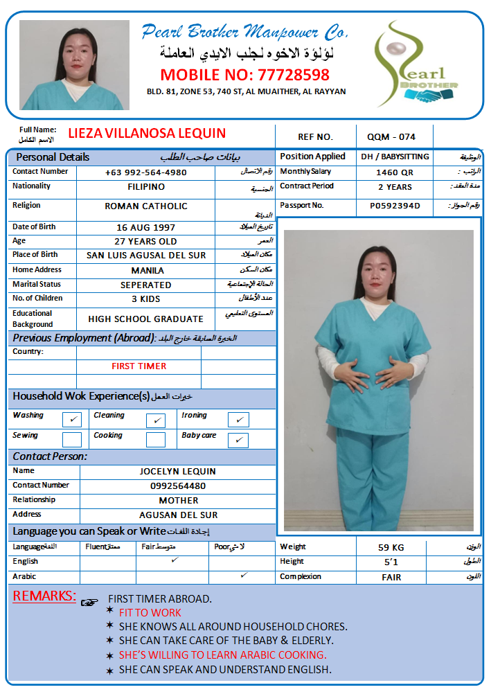 الاسم - عربي LIEZA VILLANOSA LEQUIN