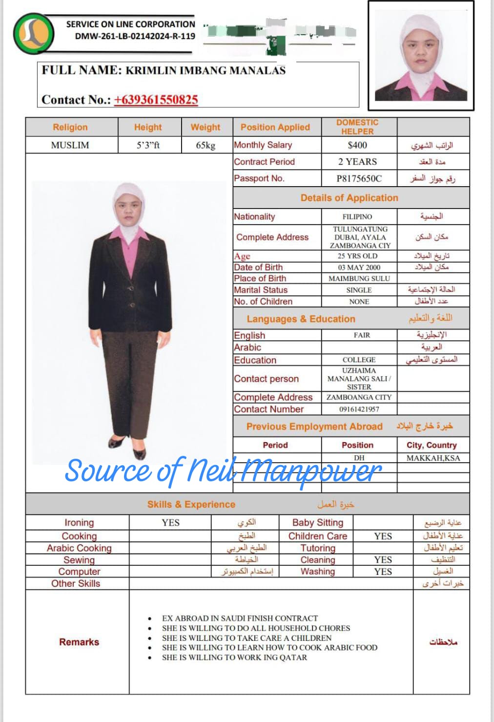 الاسم - عربي KRIMLIN IMBANG MANALAS