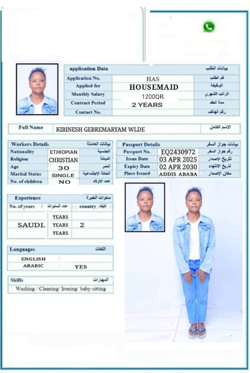 الاسم - عربي KIBINESH GEBREMARYAM WLDE