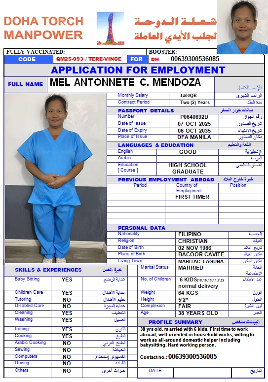 الاسم - عربي MEL ANTONETTE C MENDOZA