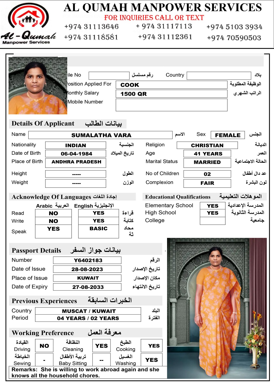الاسم - عربي SUMALATHA VARA