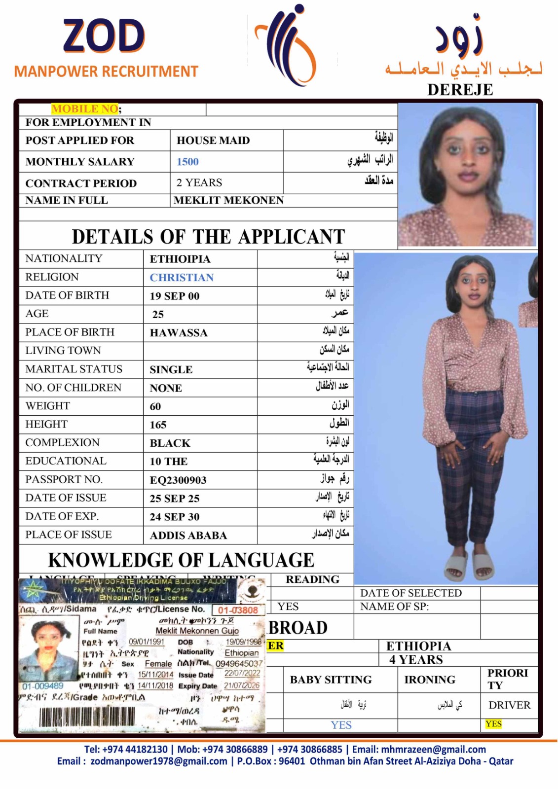 الاسم - عربي MEKLIT MEKONEN