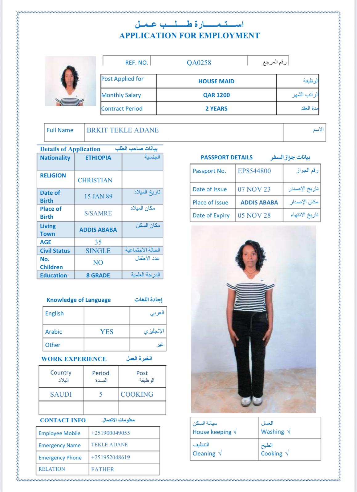 الاسم - عربي BRKIT TEKLE ADANE